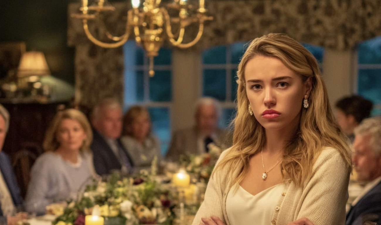 From the living room came the rich aroma of meat fried with garlic; glasses clinked, men’s laughter sounded. Marina took a step toward the half-open door. Through the crack she saw a set table—snow-white tablecloth, crystal bowls with salads, a platter of expensive cold cuts, a golden roast duck, bottles of wine and cognac, a vase piled with grapes and tangerines.