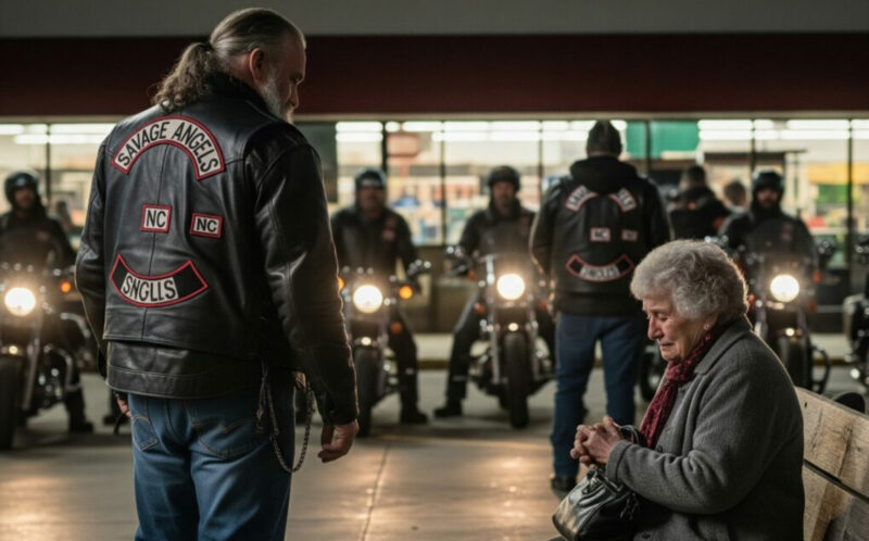The leather vests displayed: Savage Angels MC. Margaret’s pulse quickened. She attempted to appear inconspicuous. An 82-year-old woman encountered difficulties with motorcyclists. However, the most imposing figure, a man with broad shoulders and a grey beard that grazed his chest, approached her directly. She grasped her handbag more firmly. “Madam?” Are you well? His voice was unexpectedly soft. “You have been seated here since our entry into the store.” Margaret’s lips quivered. “I am awaiting my transportation.” “In this frigid temperature?” How long have you been waiting? He exerted pressure. She was unable to respond. Her tears revealed her true emotions. The man, referred to by others as Bear, crouched to align his compassionate eyes with hers. “Madam, what is your place of residence?” She faltered, nevertheless murmured her address. A tranquil thoroughfare featuring small, antiquated residences. The bikers exchanged looks that she could not comprehend. Bear enquired, his voice now subdued: “Is your son named Paul Carter?” Her stomach sank. She acquiesced. Bear’s jaw clenched, however upon gazing at her once more, his eyes softened.