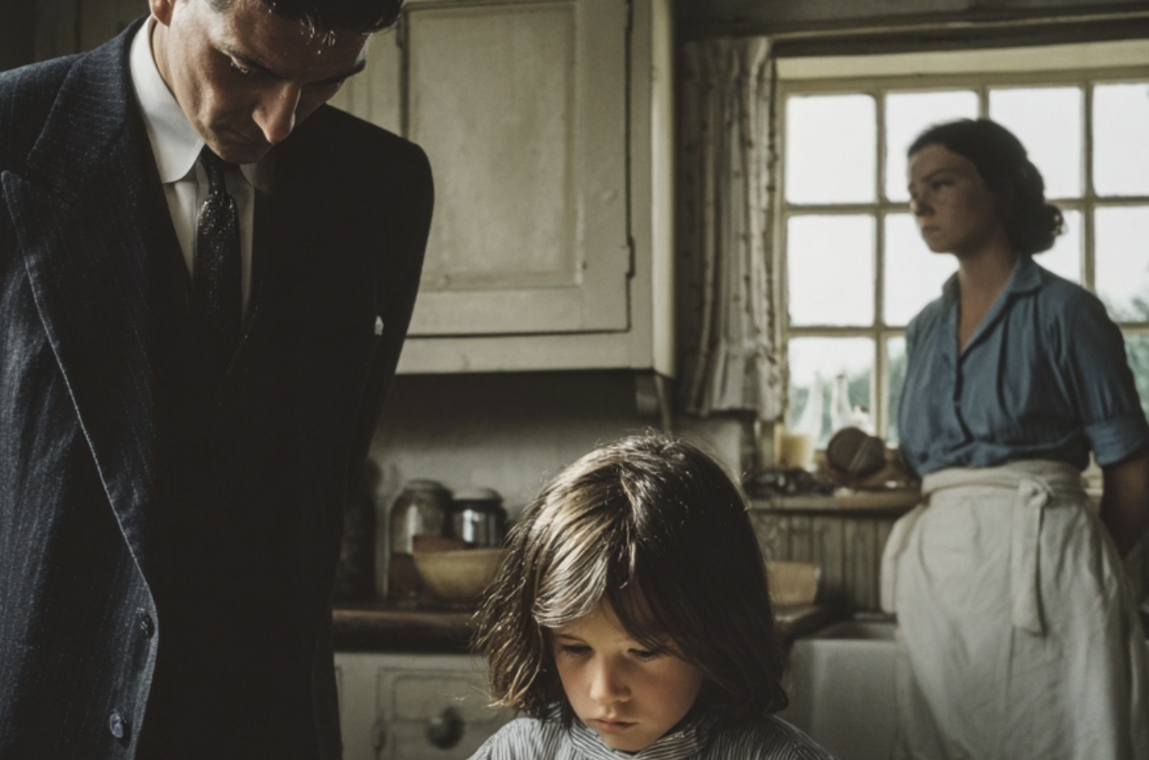 He took off his coat, loosened his tie, and followed the sound of a spoon tapping porcelain. Suddenly he saw—a barefoot boy at his table. And beside him—Maria, pale, clutching a cross at her throat.