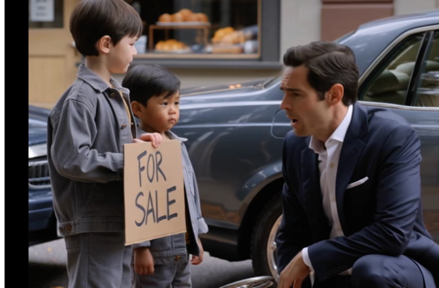 The man’s gaze moved from the sign… to the boys’ worn clothes… to the blue ribbon tied around the little steering wheel.